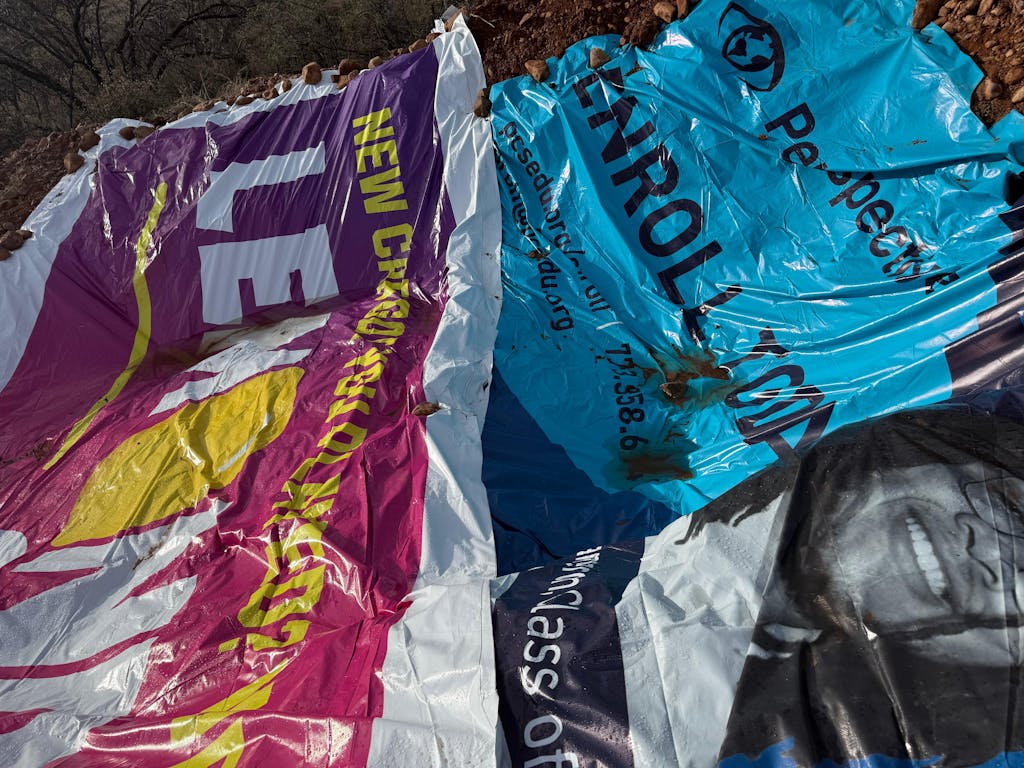 - Re-purposed billboard vinyl
