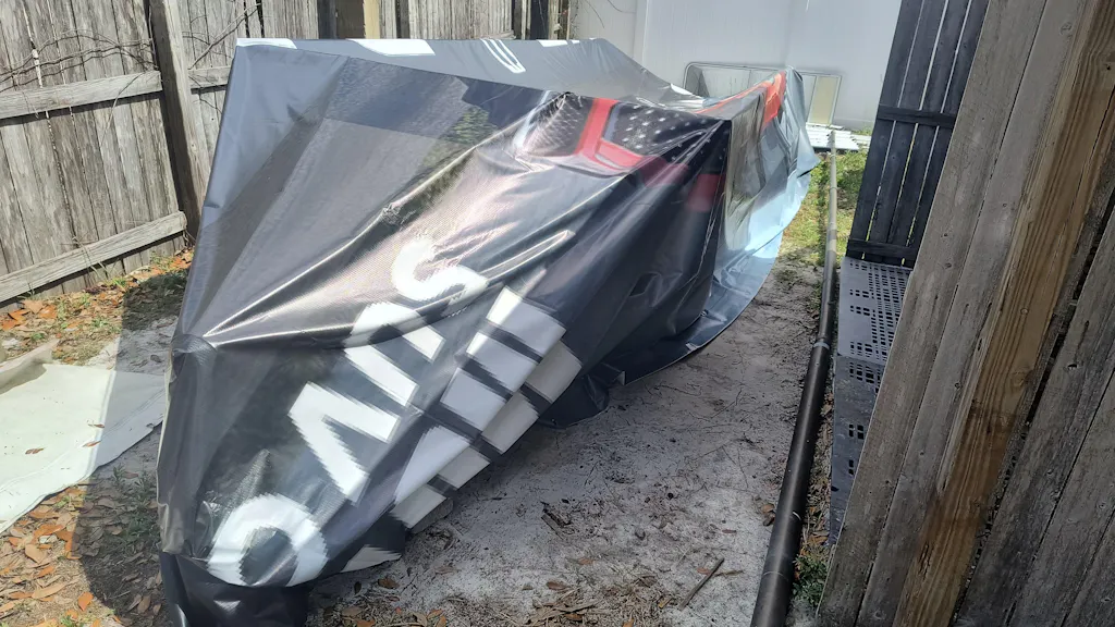 - Re-purposed billboard vinyl